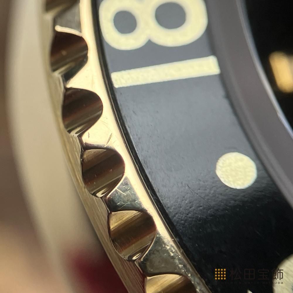 国際保証書無し 時分秒針とGMT針は交換されておりトリチウムではございません ベゼル・ラグ・裏ぶたに傷有り メーカーにてオーバーホール済み(2025年6月) 腕周り17.5cmまでの方(3コマ少ない) 当社1年間保証付き